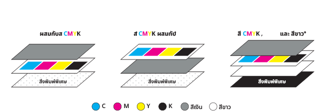 สามารถสลับชั้นของการพิมพ์ได้ และทำสี Metallic ได้