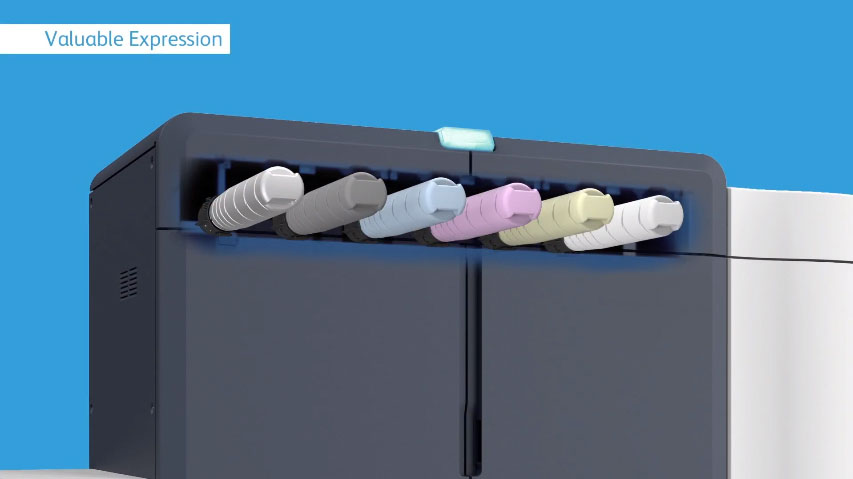 โดดเด่นไม่เหมือนใครด้วยหมึกสีพิเศษ เฉพาะเครื่องพิมพ์สำหรับธุรกิจสิ่งพิมพ์ Iridesse™ Production Press ให้คุณสร้างสรรค์งานพิมพ์ได้อย่างไรขีดจำกัดด้วยขอบเขตสีที่กว้างขึ้น ไม่ว่าจะเป็นสีชมพู สีพาสเทล สีนีออน ที่สามารถเรืองแสงได้เสมือนสายรุ้ง
