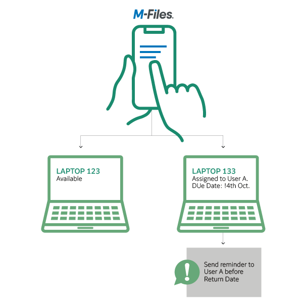 Asset status and user info is available real-time, online. M-Files can also send reminders to the user to return the assigned asset.