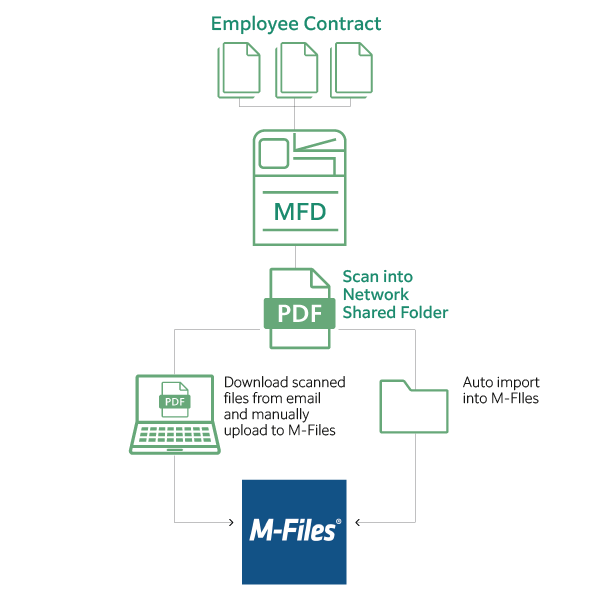 Các tài liệu scan được lưu trữ trong một kho trung tâm. Dữ liệu nhân viên có thể được xem tại bất kỳ đâu bất kỳ lúc nào.