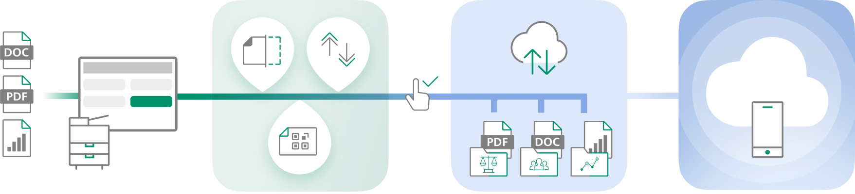 輕鬆使用多功能影印機掃描任何紙張文件,然後連結至 DocuWorks Tray,即可更快地整理和分發文件。將文件數碼化後,您即可將數據儲存於雲端。這樣不僅可以大大減少實體儲存空間,更可快捷輕鬆地搜尋文件,並減低遺失重要檔案的風險 — 令業務變得更智能和高效。