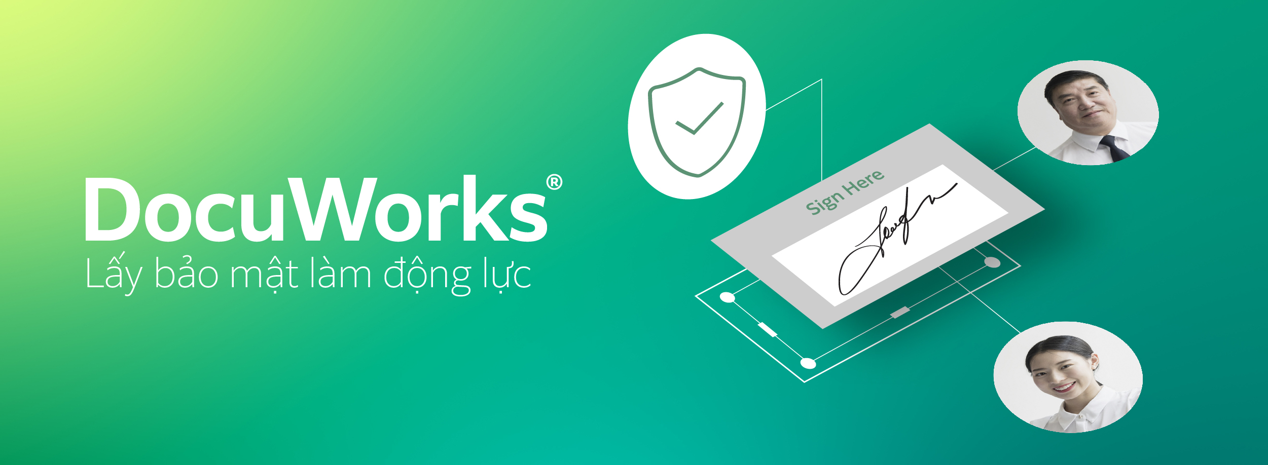 Chữ ký điện tử là minh chứng cho quyền sở hữu của bạn đối với Tập tin DocuWorks. Dù bạn chọn chữ ký điện tử có sẵn hay chữ ký điện tử tích hợp từ DocuSign và AdobeSign, tính năng này không chỉ giúp tăng tốc quy trình phê duyệt mà còn giảm được chi phí giấy tờ và in ấn.
