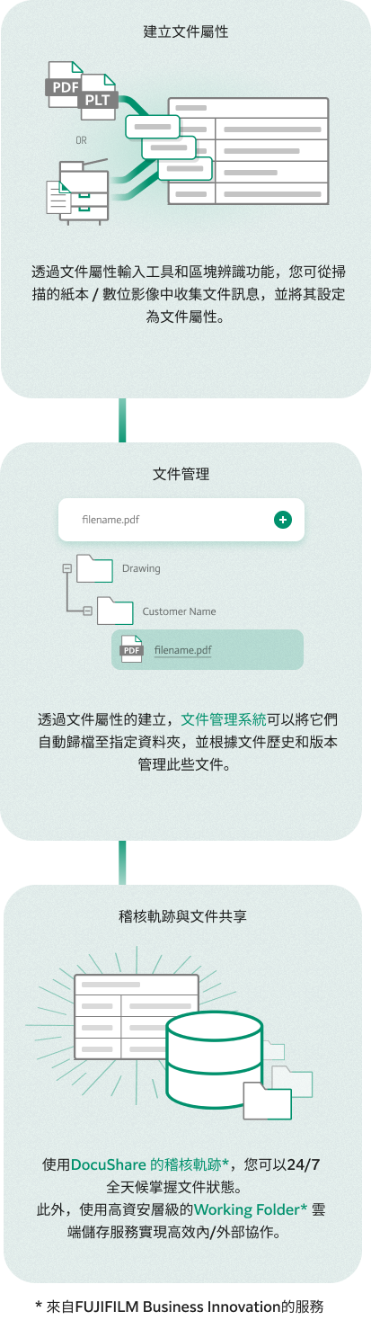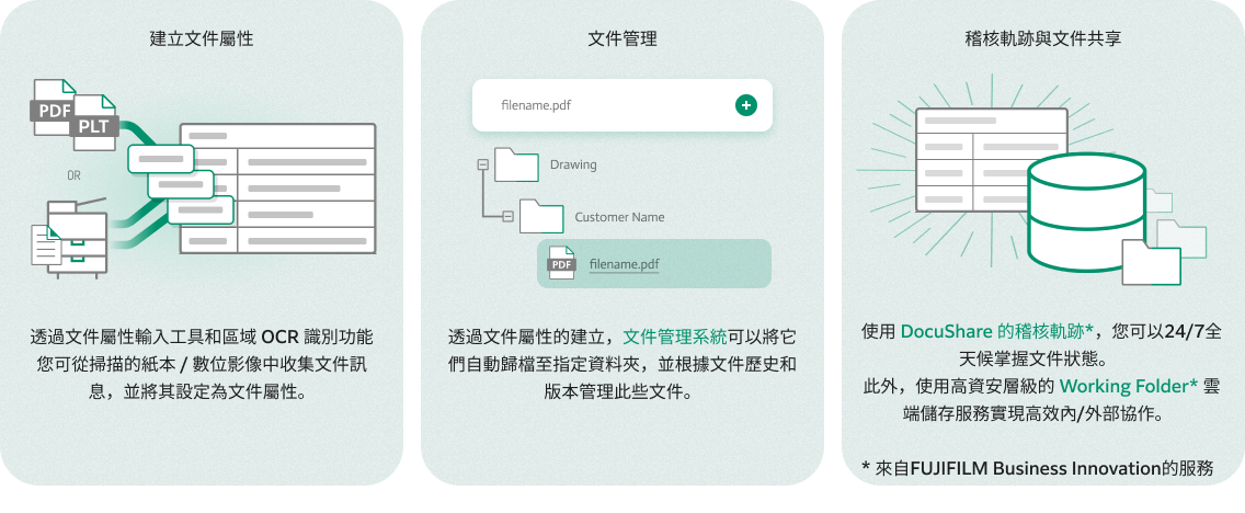 重要文件安全地儲存於您的資料庫,您可依授權進行操作並隨時追蹤文件歷史。