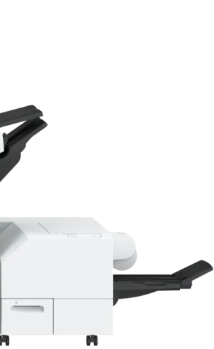 该组件用途广泛,功能百搭,可提高印刷品的质量。它可以对文件进行分类/堆叠,执行单页折叠,提供订书机选项和 2/3/4 孔打孔功能,并支持小册子的骑马钉装订。 长纸盘提供足够的空间容纳更大尺寸的纸张,方便堆叠长纸张。