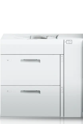 专为打印过程中的封面和纸张插入而设计,纸张容量最高可达 250 张,可容纳 330 x 488 毫米纸张尺寸和最高 350 克/平方米纸张重量。该介质处理组件有助于减少误差,简化联机和离线加工。