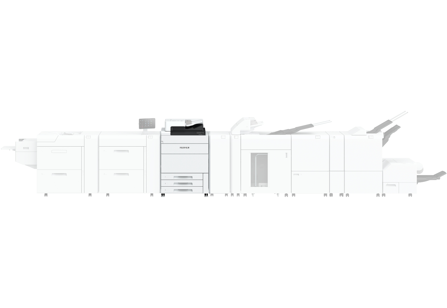 인쇄물 후가공 향상시키기 위한 여러 기능을 갖춘 장치입니다. 문서를 분류하거나 쌓고, 접고, 스테이플하고, 구멍을 뚫고, 스테이플 소책자를 중철할 수 있습니다. 롱 캐치 트레이는 편리한 적재를 위해 확장된 용지 크기를 수용합니다. *모듈 호환성을 위해 추가 장치가 필요합니다.
