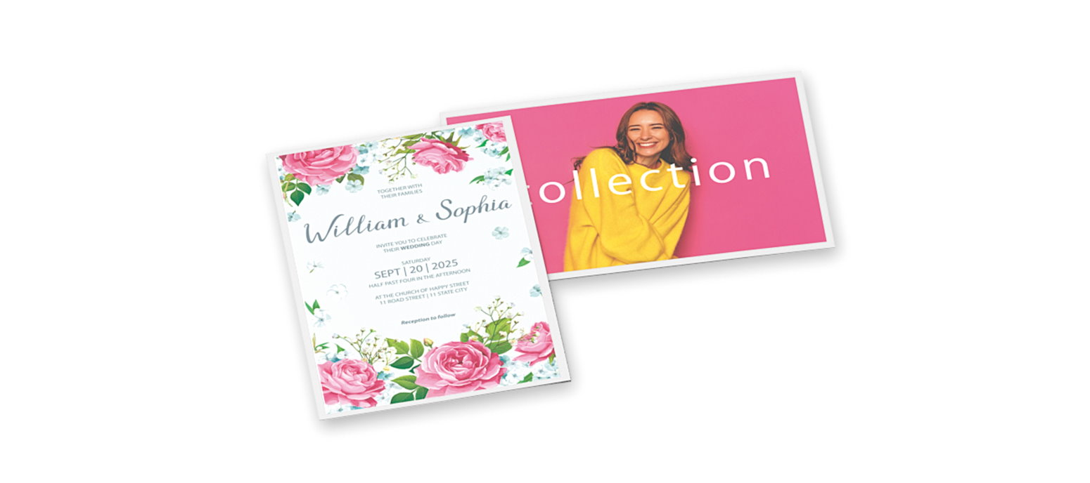 使用一系列具有特殊紙張效果的紙材 (包括紋路紙張) 提供獨特的觸覺體驗,為您的印刷品增添獨特的尊榮感。從明信片、邀請函到宣傳資料,輕鬆處理特殊紙材